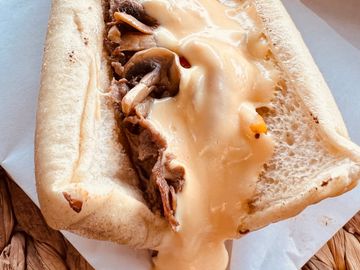 Thinly sliced steak, peppers, mushrooms, and onions topped with homemade cheese sauce.