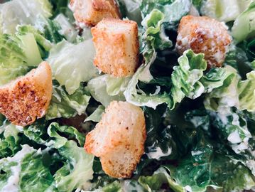 Homemade Caesar Salad with a food truck twist....includes the best dang croutons you'll every eat.
