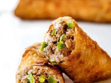 2 Homemade Philly Rolls filled with Steak, Onions and Mixed Peppers, with Truk Cheese Whiz.